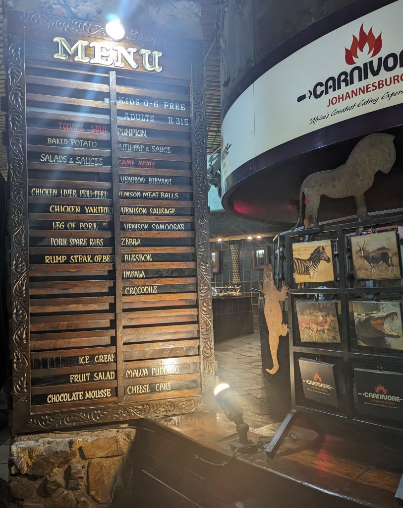 Carnivore, a restaurant in Johannesburg, South Africa that serves all types of game meat.Zebra?? Fucking DELICIOUS!