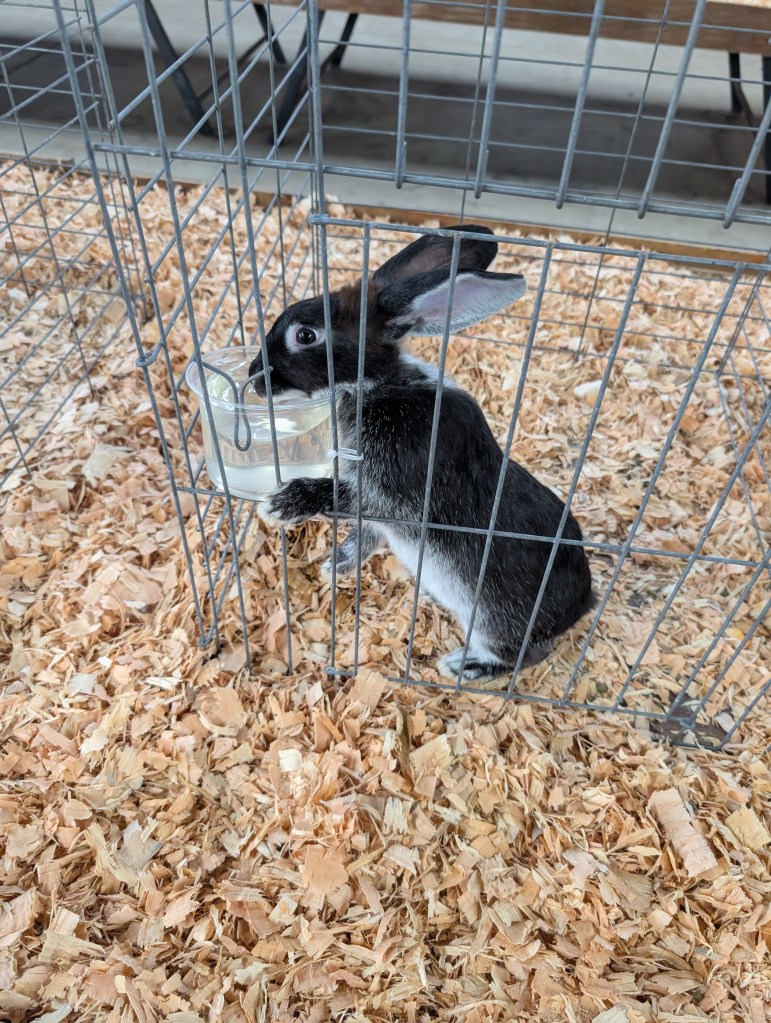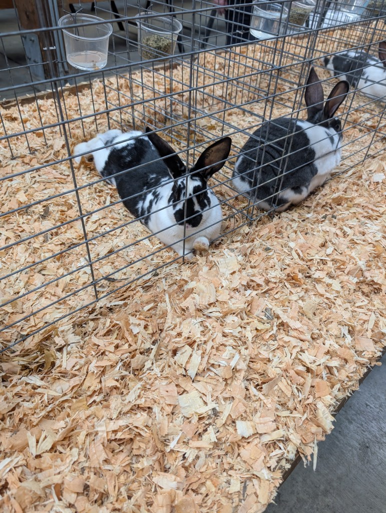 The first day I was there wasn’t as bad as the small animal barn had rabbits and guinea pigs. I have never really been a fan of rodents. They are cute, rabbits are fluffy and adorable and also excellent food animals if that’s what you are raising them for, but as I said, I wouldn’t do it again. I just don’t get along with most rodents in the way I do with other animals. I much prefer chickens! Nonetheless, I enjoyed seeing the rabbits at the fair and admired some of the beautiful coat colors that aren’t as common in standard meat rabbits or pet rabbits.