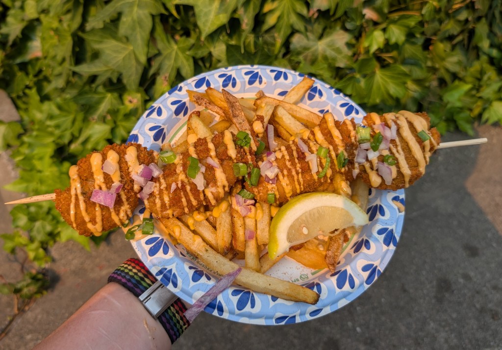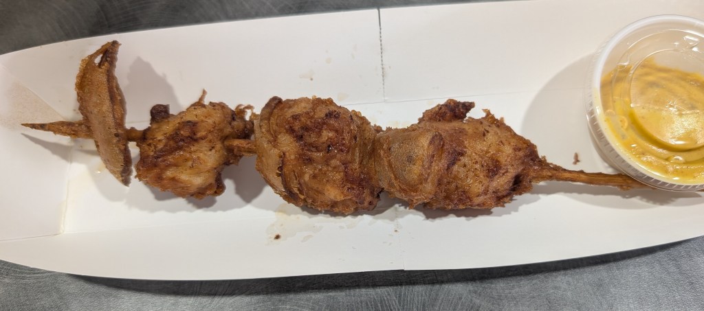 Next on the docket. Oysters. I have never had oysters, but I like other bivalves, shellfish and molluscs so I figured it was a safe bet. Fried oysters, not raw ones. To be honest, I wasn’t specifically looking to try oysters, but I stumbled across a stand that had them so, why not?