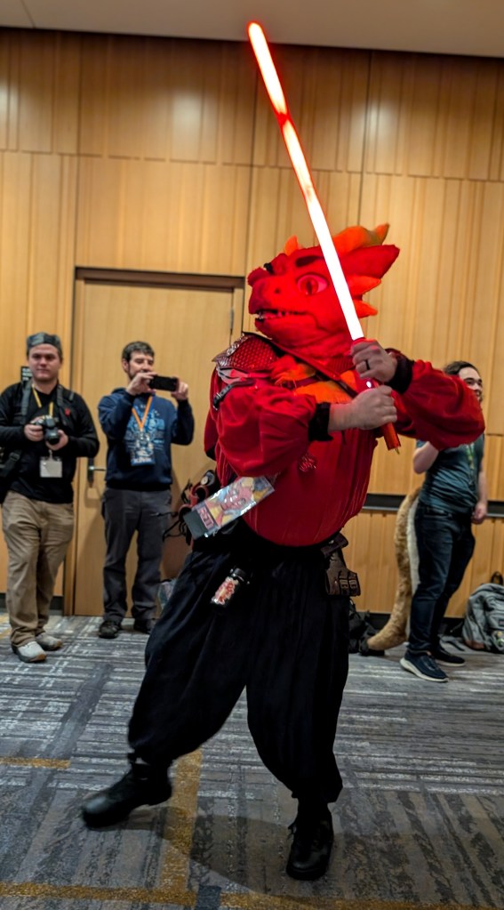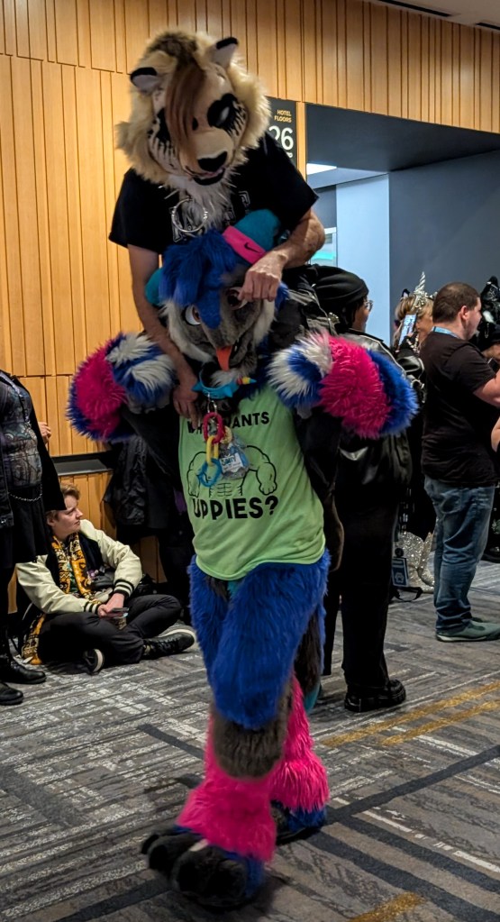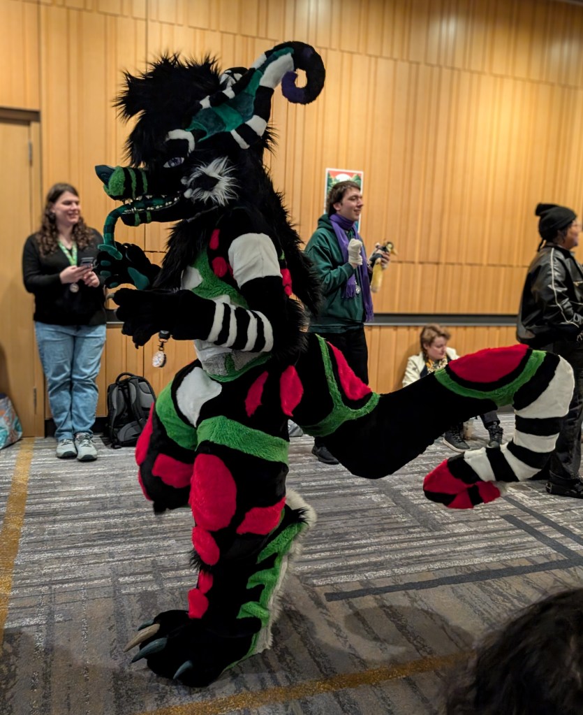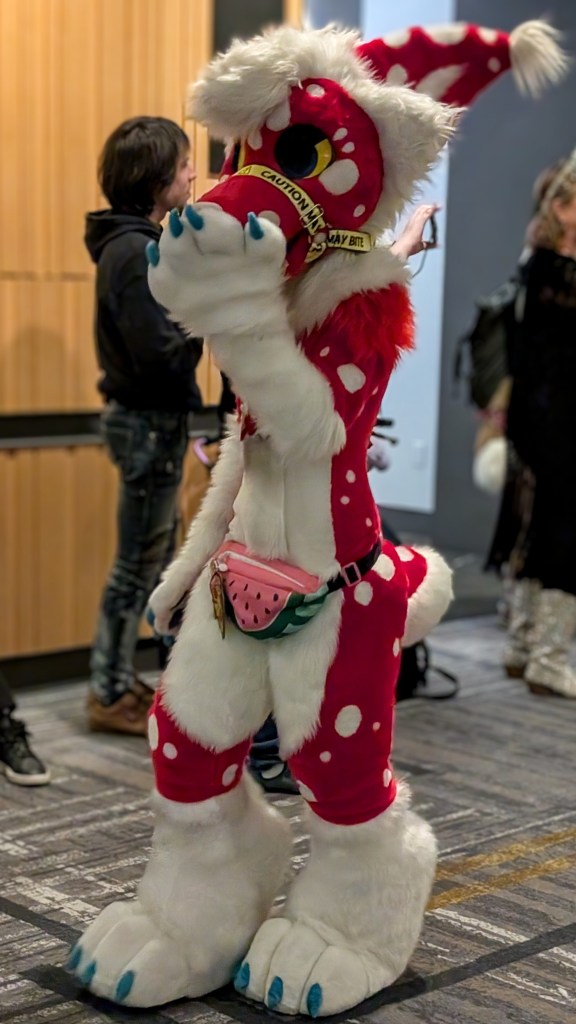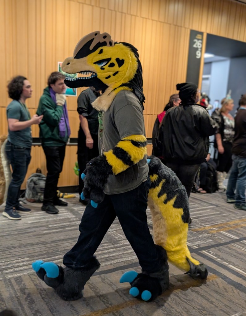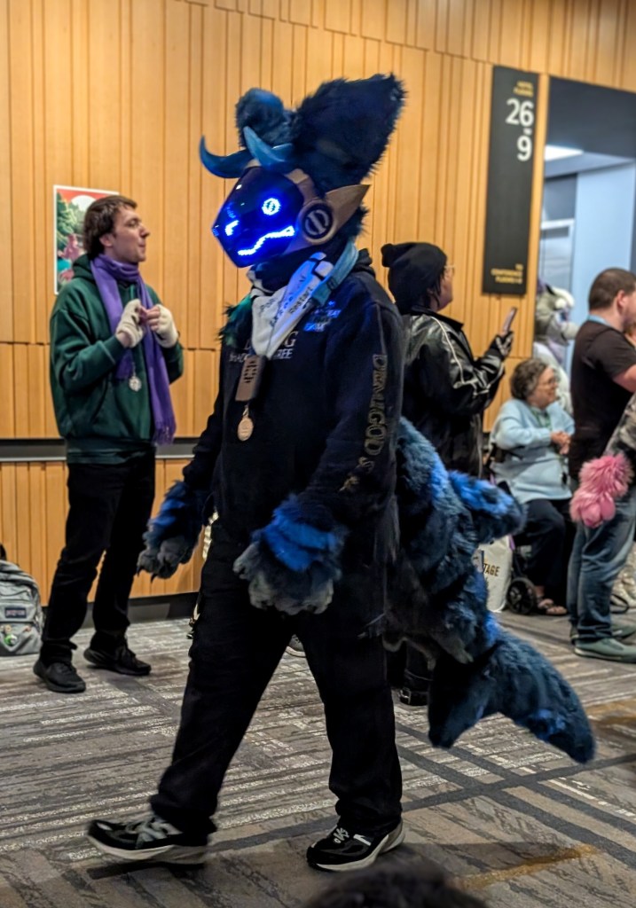 Overall, it was such a fun experience! The entire event was very welcoming and relaxed. It was amazing to see parents with their kids, especially in the case of parents who weren’t into it and maybe were even confused by the whole thing, but there they were, letting their kids explore their own interests and supporting them all the way. That was really so heart warming to see when so many parents seem to want to shape their kids into whatever ideal version they envision for them, rather than allowing them to become their own selves. There was one young girl I saw who was talking in great detail to a fursuit creator in the vendors area. The mom clearly had no idea what they were talking about but she was trying her best to follow the conversation and ended up helping her daughter pick out some supplies to build her own fur suit. Parents engaging in and supporting their kids’ hobbies and interests is such a wonderful thing to see!! And ya know what? If that girl is any good at making suits and develops a taste for it… she could make a lot of money! Most full fur suits sell for THOUSANDS of dollars! Not that everything has to be monetized of course, she could just enjoy it and do it for fun too!