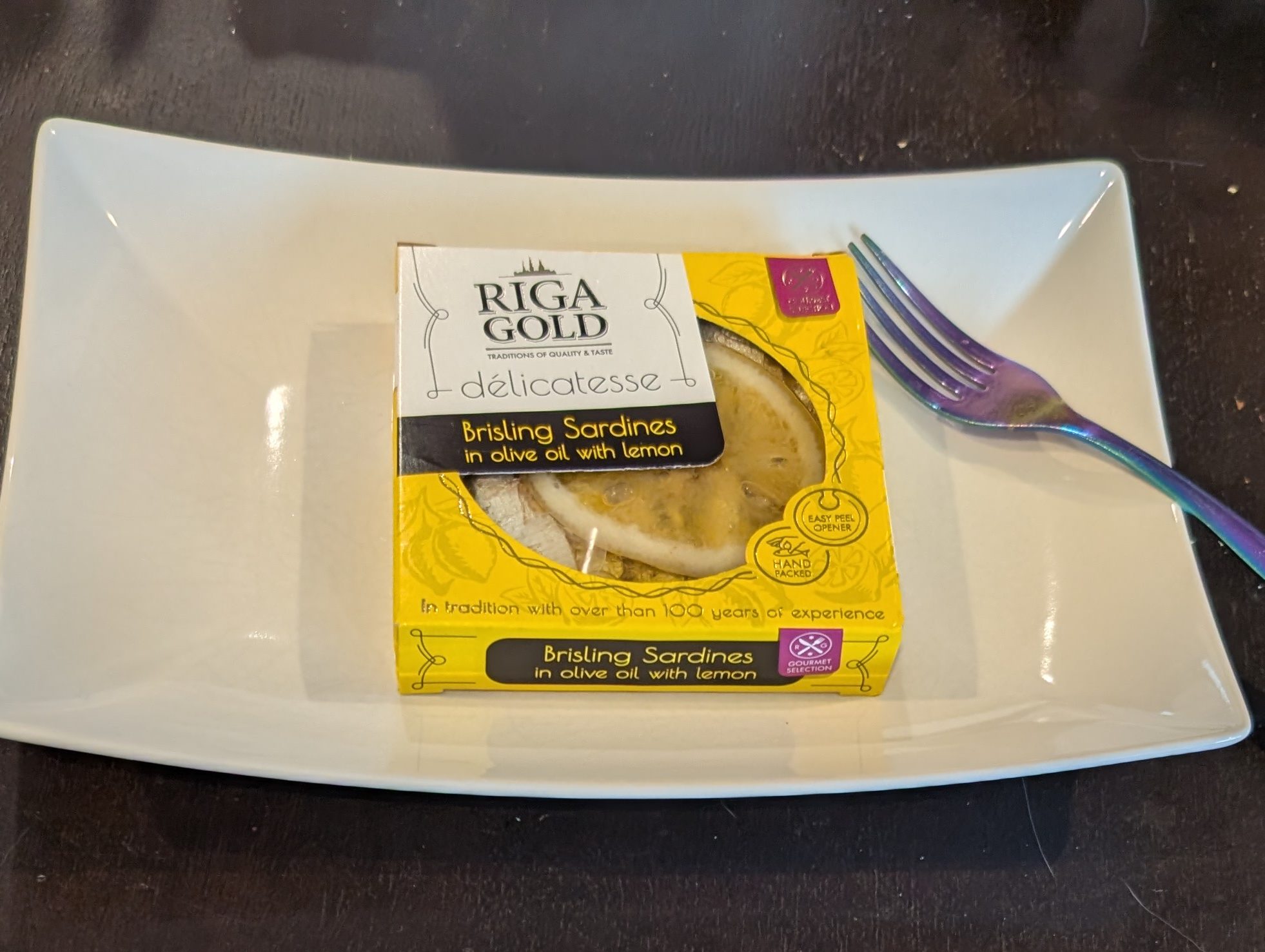Tin 1- Riga Gold: Brisling Sardines in Olive Oil with Lemon. Love it. Honestly, I never expected to like sardines as much as I do but I don’t think I have had a single one yet that wasn’t at least good. These were excellent. Lemon and olive oil is a winning combination for tinned sardines every time! 8/10.